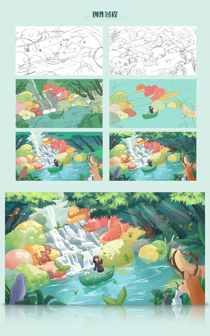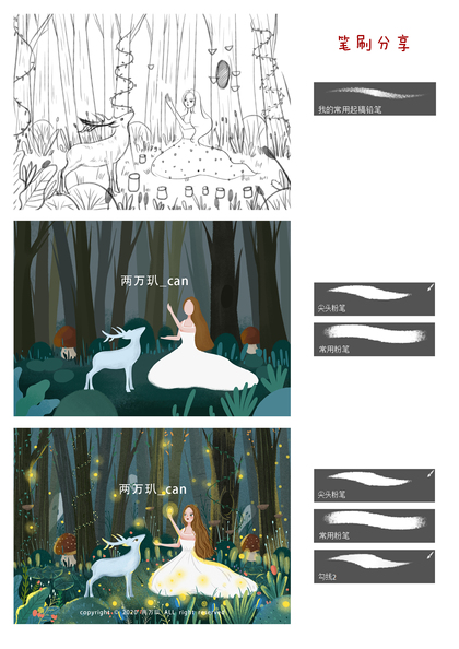 场景插画|步骤图|笔刷分享|萤火虫之夜