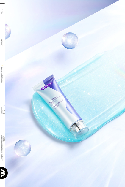 慕斯洗面奶/护肤品/创意摄影/商业摄影/静物场景/蓝色