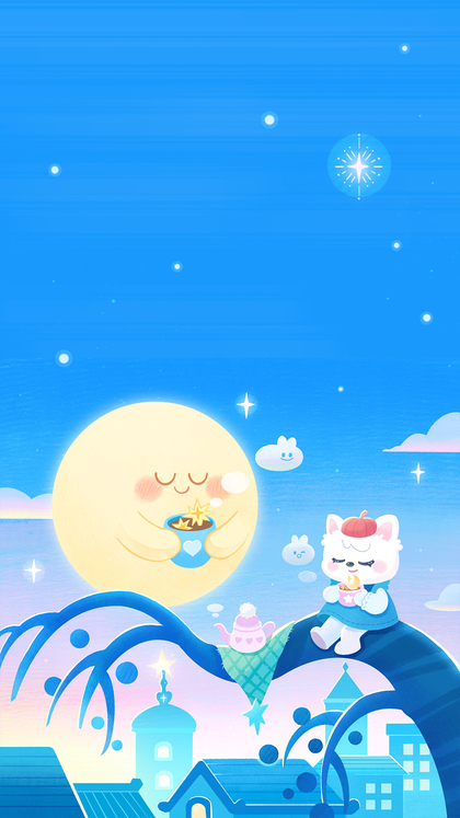 哈咪猫中秋插画