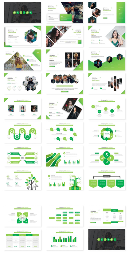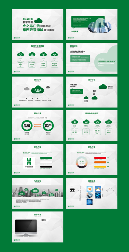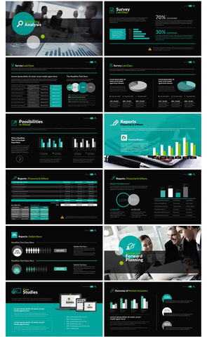 200多页扁平化简约数据分析统计PPT模板20种配色