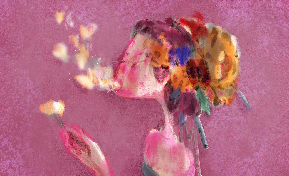 手捧花艺手绘