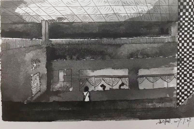 横渠散人创作写生《 梦.屋顶》当代文人画,文人画,研学
