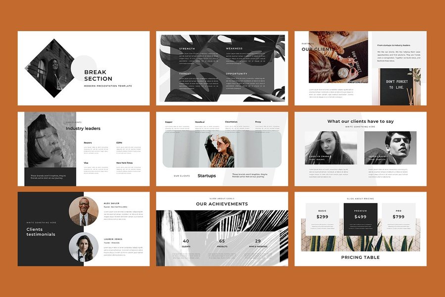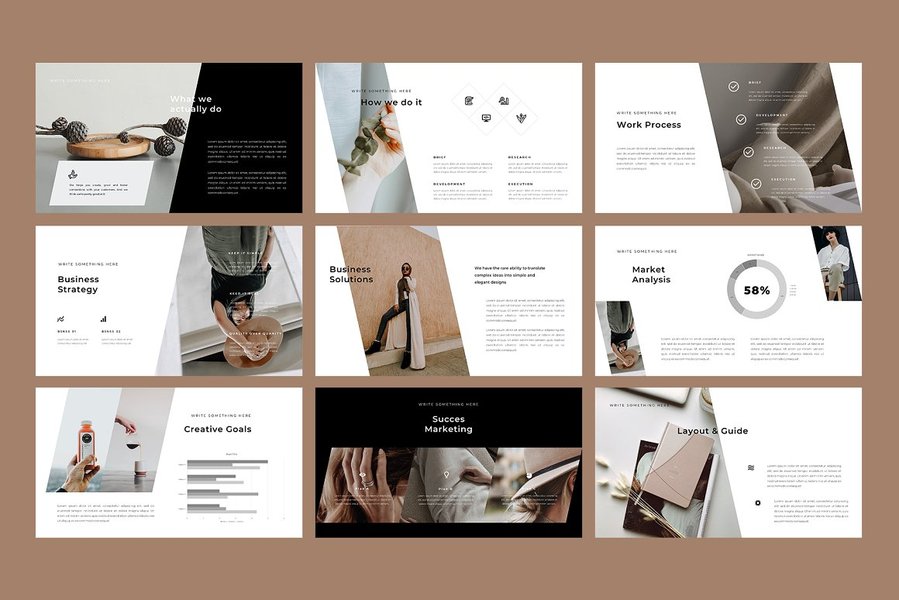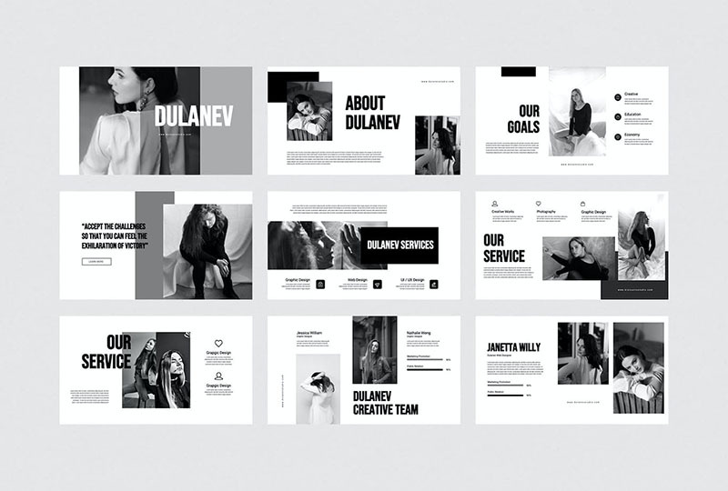 30页简约大气黑白杂质风摄影图片展示通用国外PPT模板