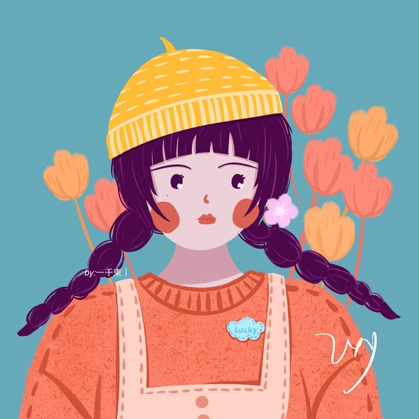 花栀子插画:偏复古色磨砂感可爱女生头像
