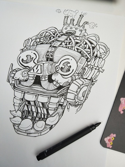 昨儿跟闺蜜开玩笑说我要画个骷髅再头盔里!