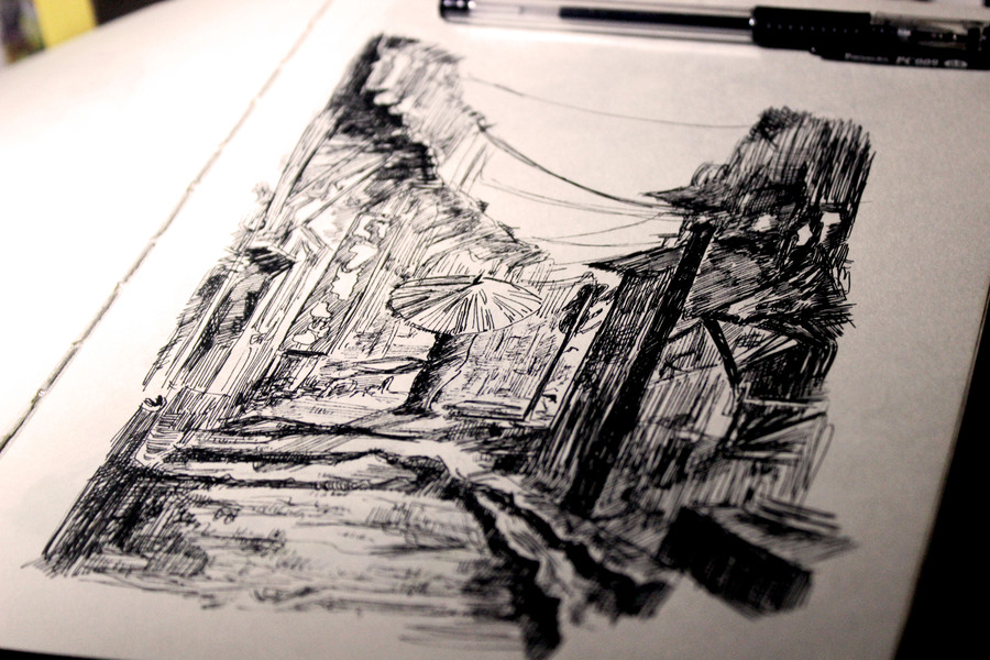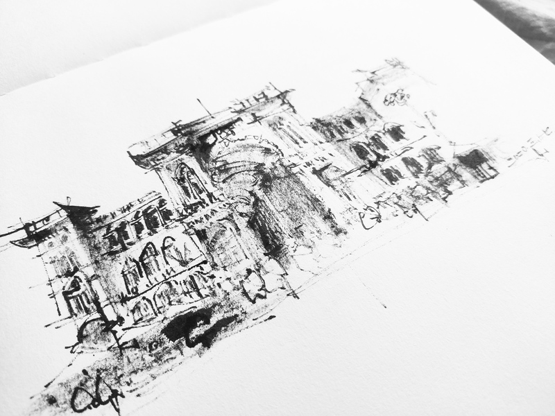 建筑淡彩—烟台—金沙滩海滨(带过程)
