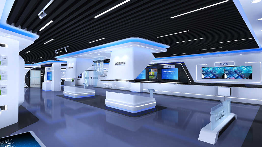 计量所展示厅科技风蓝白系3D效果图