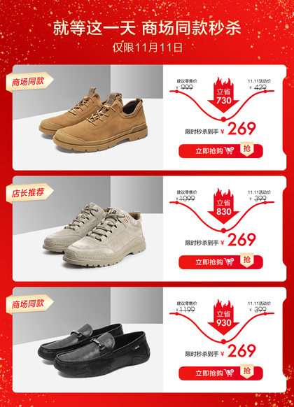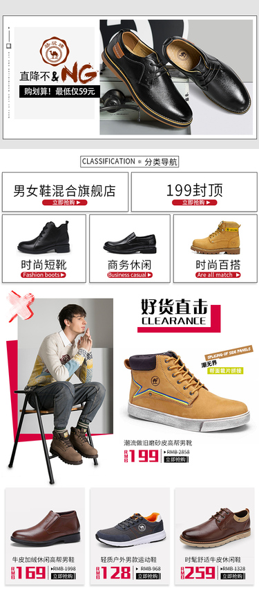 春节不打烊 小年夜 元宵节男鞋活动页 节日红色大促