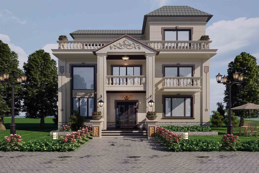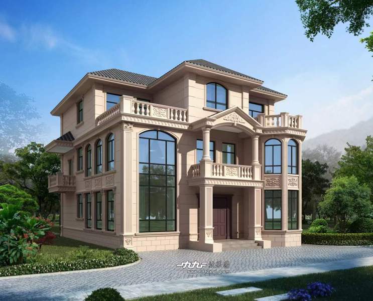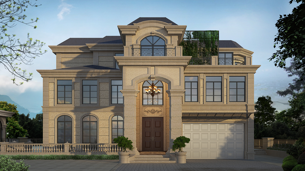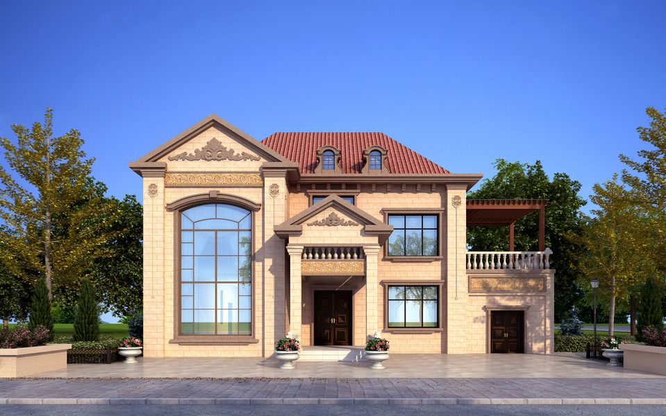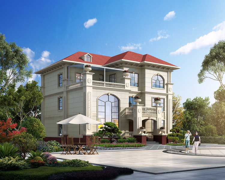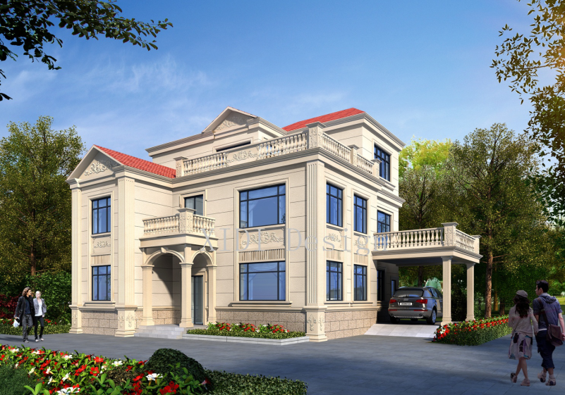 G23333:欧式简约自建别墅设计,占地12.5X11米