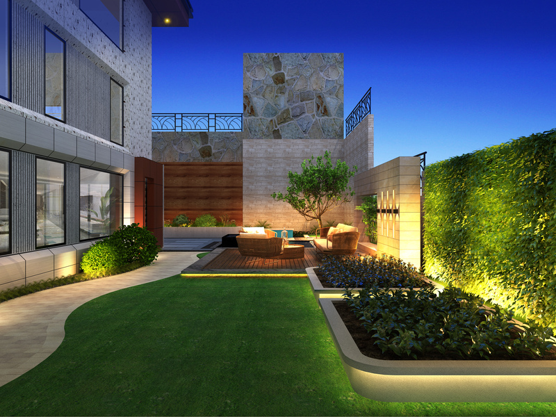 现代庭院日景,夜景表现