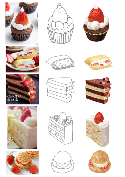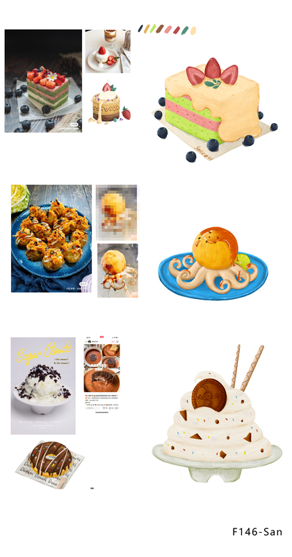 美食矢量潮流插画创意甜品站及文创物料包装延展设计