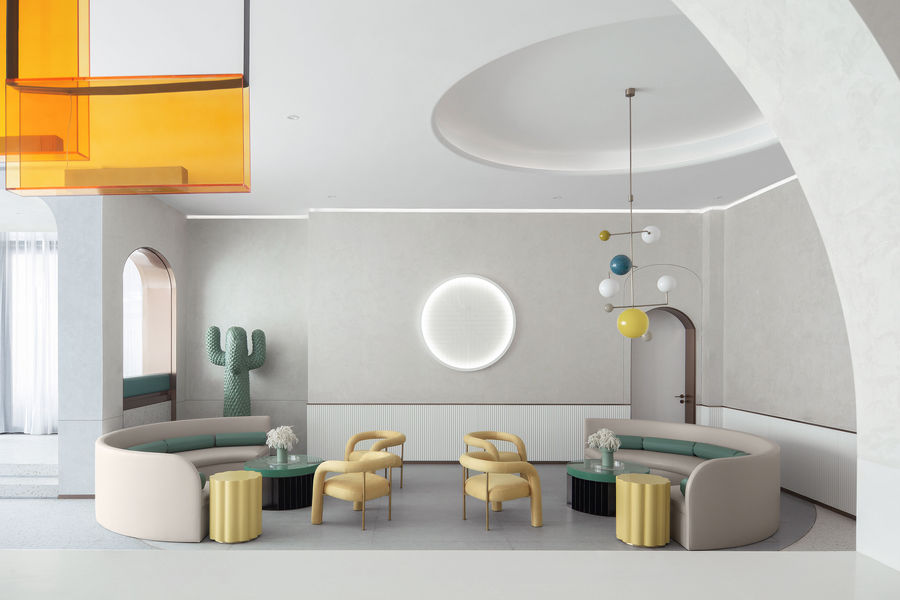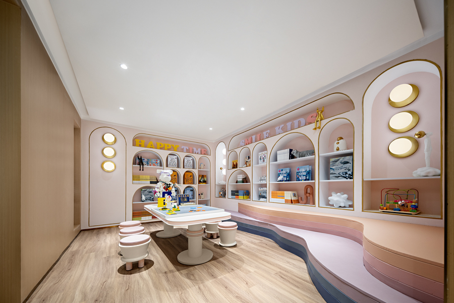 马卡龙样风格的板间。