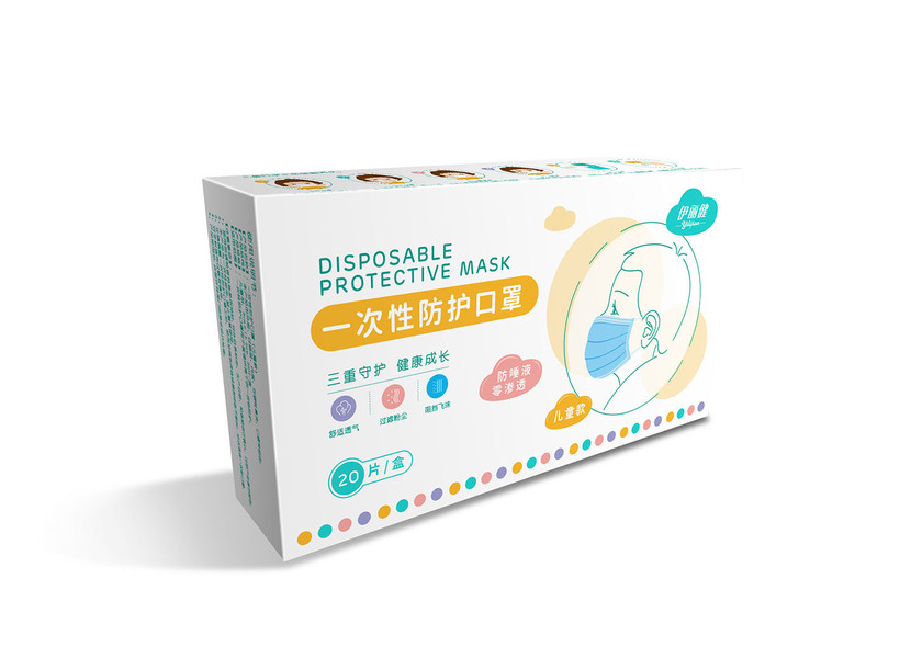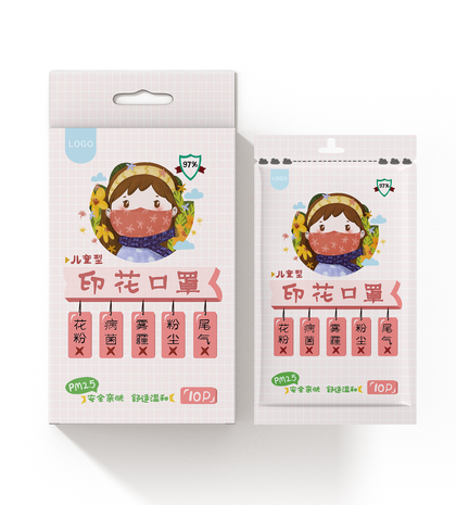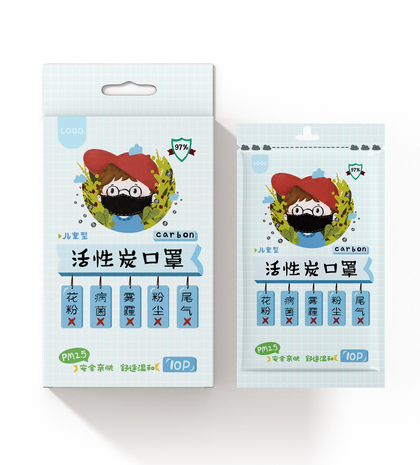 趣味手绘风儿童口罩包装设计