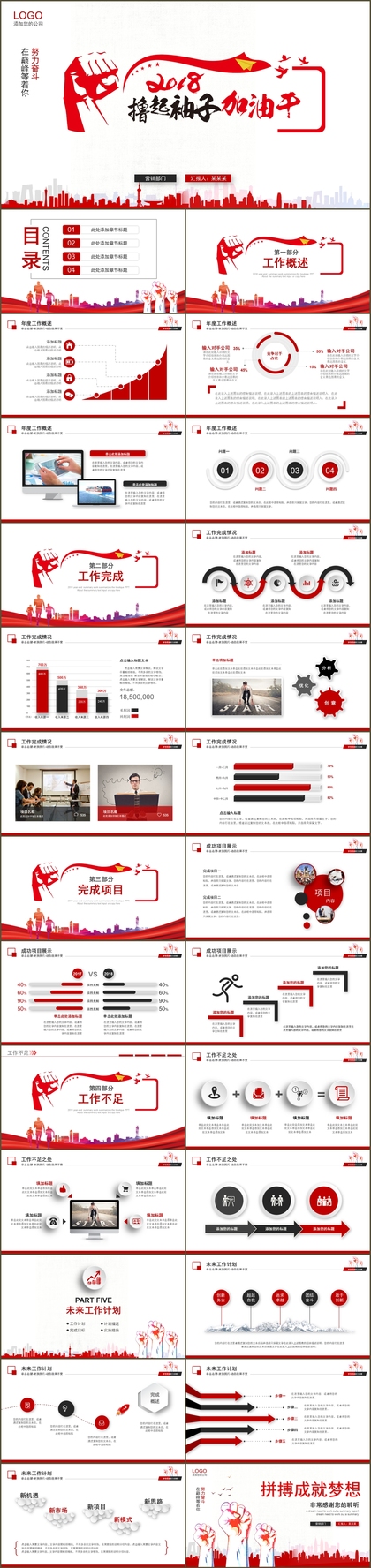 撸起袖子加油干拼搏励志年终工作总结述职报告PPT模板