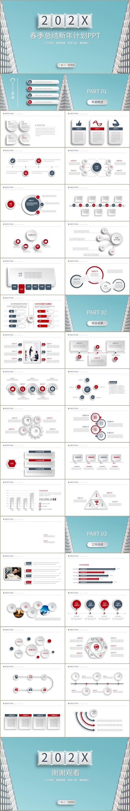 时尚创意简约风春季工作总结计划会议报告PPT模板