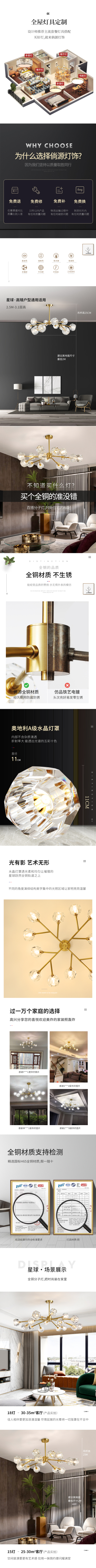北欧风纯铜吊灯详情