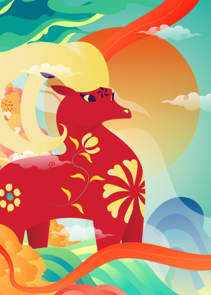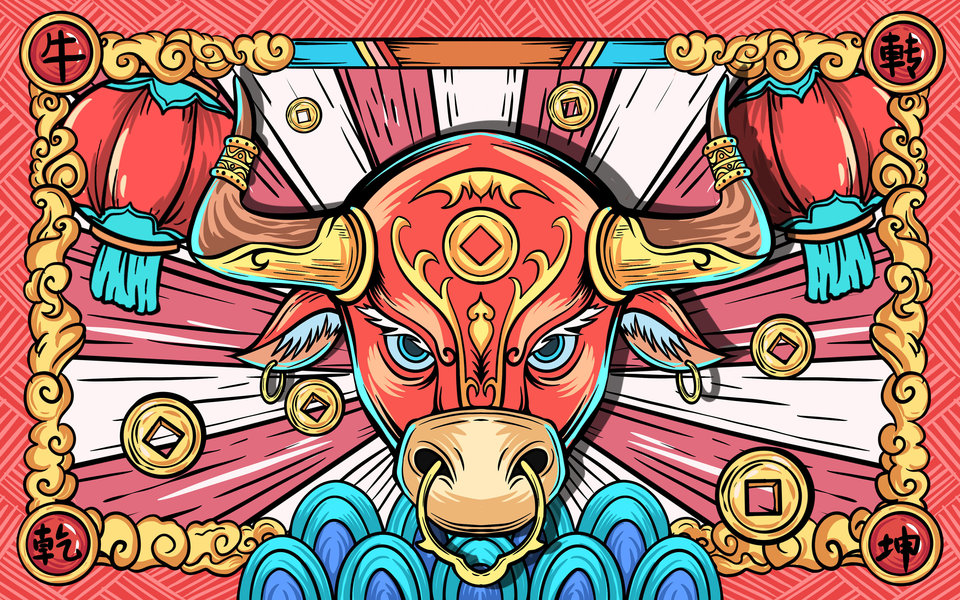 国潮牛年迎春图