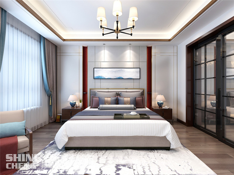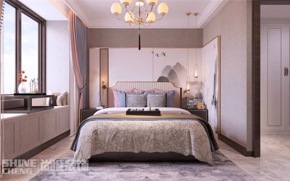 泰安鲁商中心136平新中式风格装修设计效果图案例