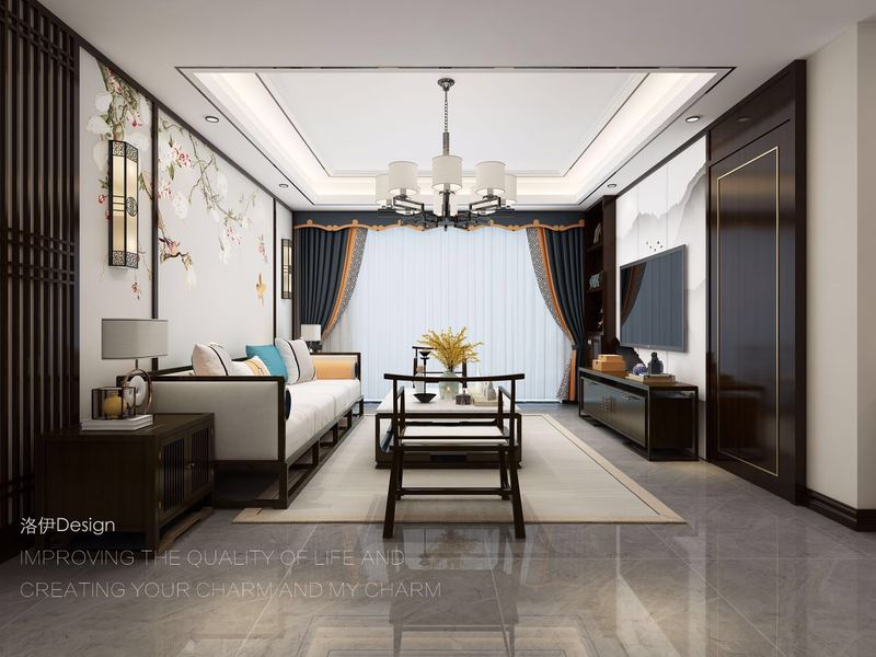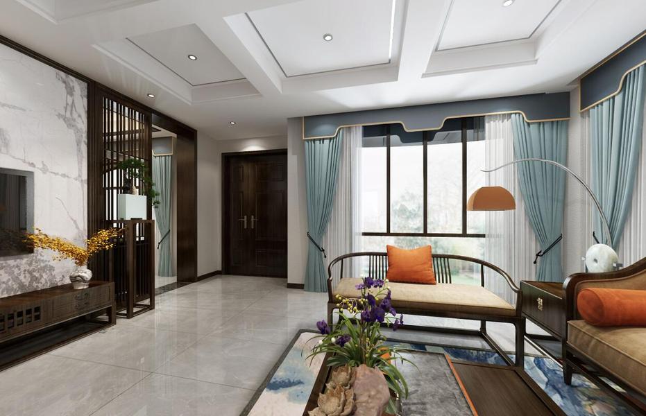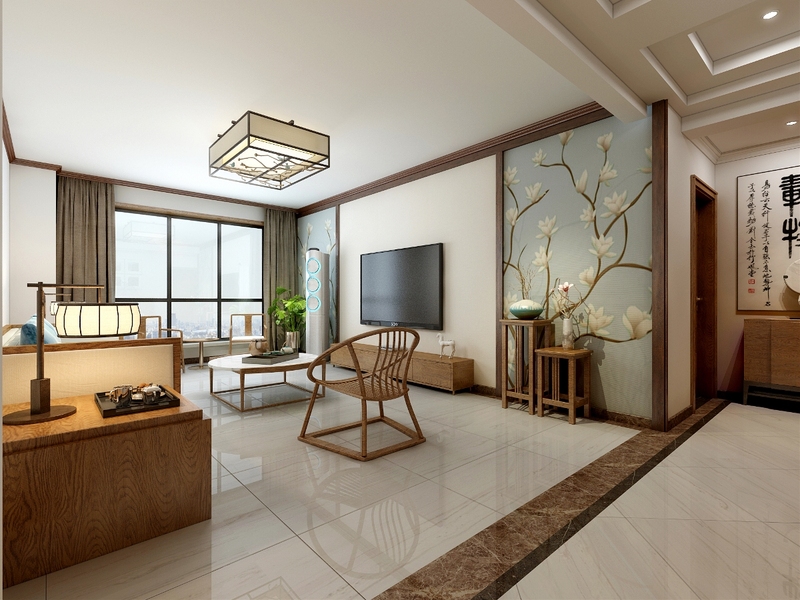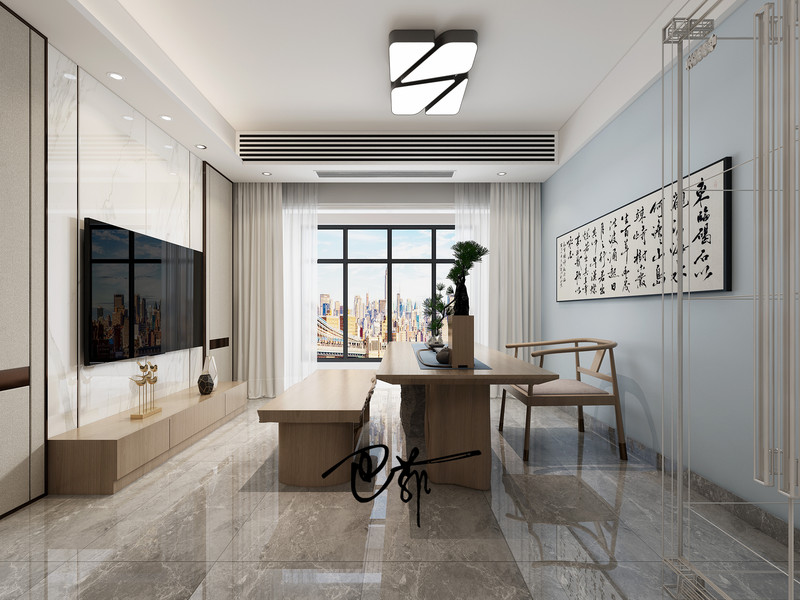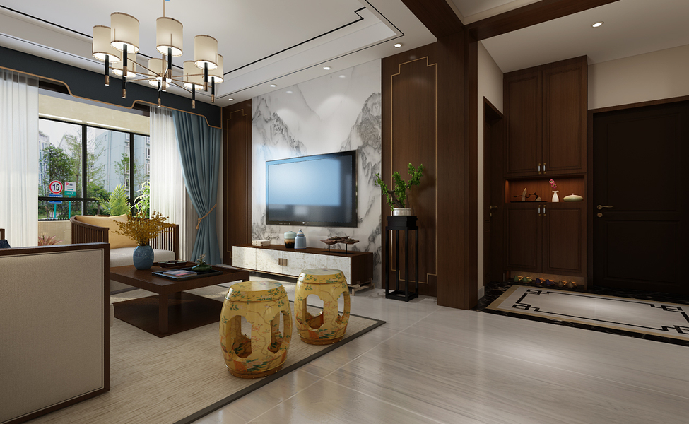 泰安恒基名筑小区新中式风格装修设计效果图案例