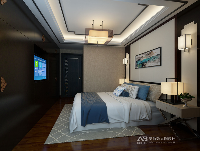 泰安都市森林小区154㎡中式风格装修设计效果图案例