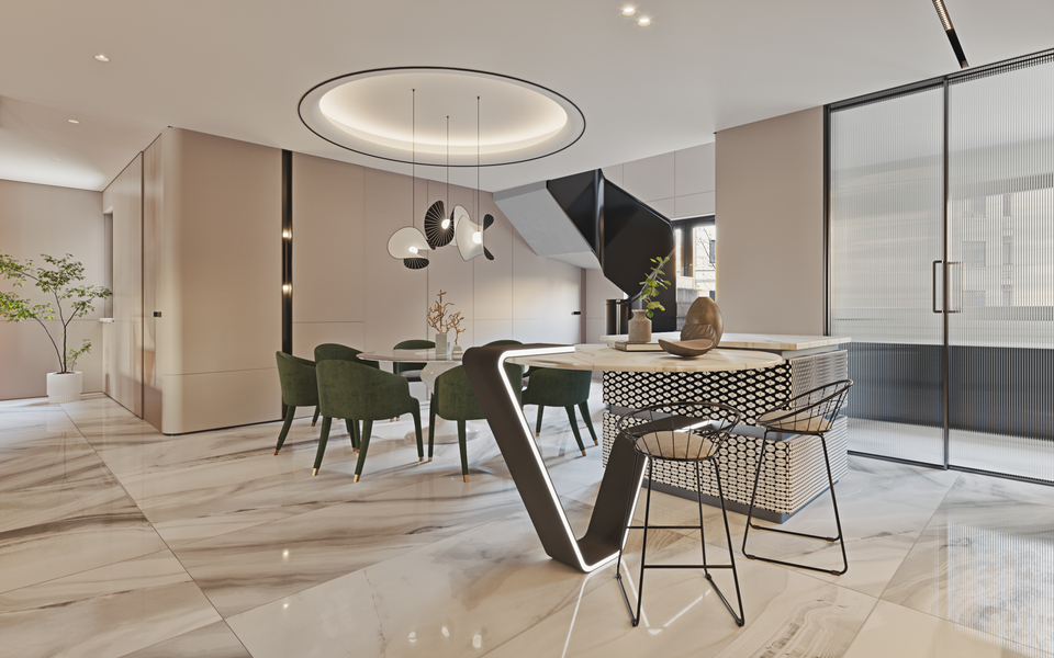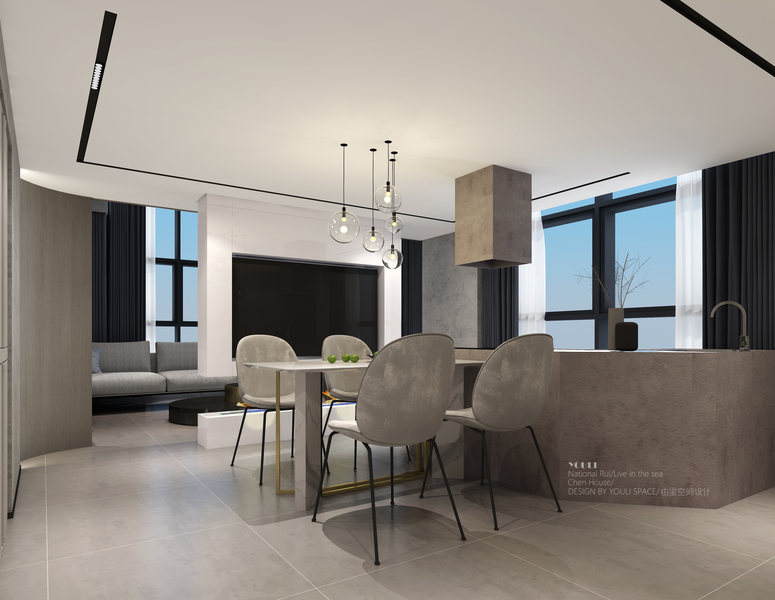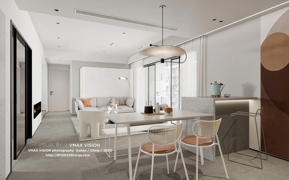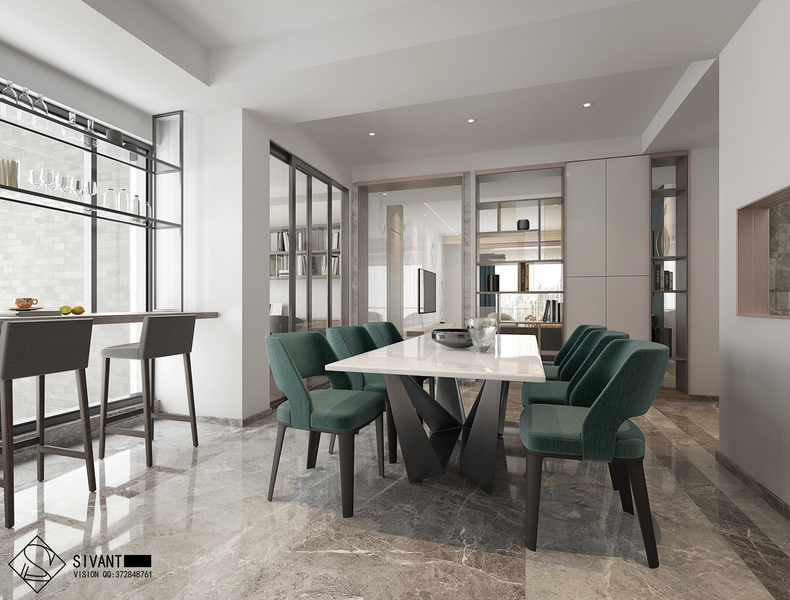 现代简约客厅餐厅表现