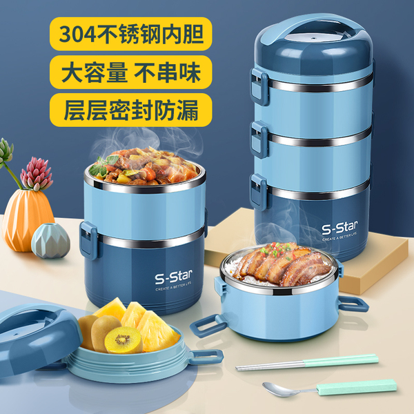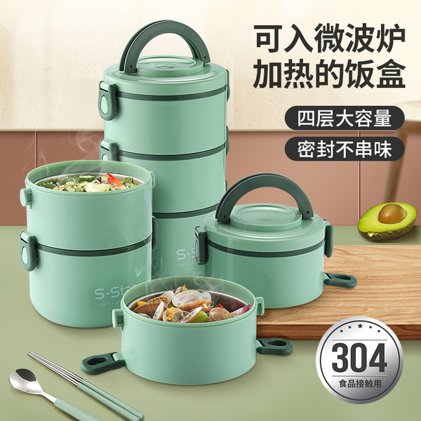 不锈钢保温饭盒车图微波炉加热饭桶直通车图便当盒车图