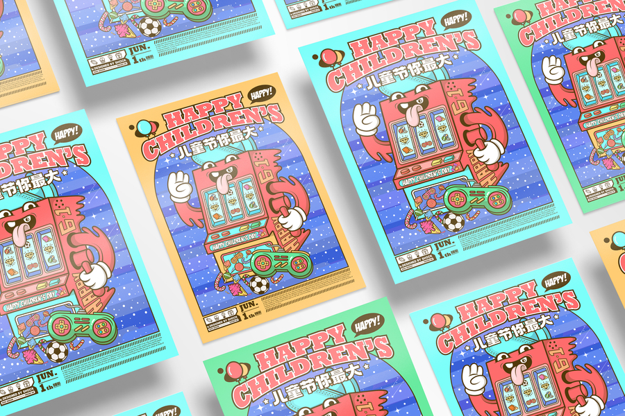 【潮流插画】原创六一儿童节日主题矢量插画海报