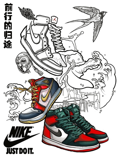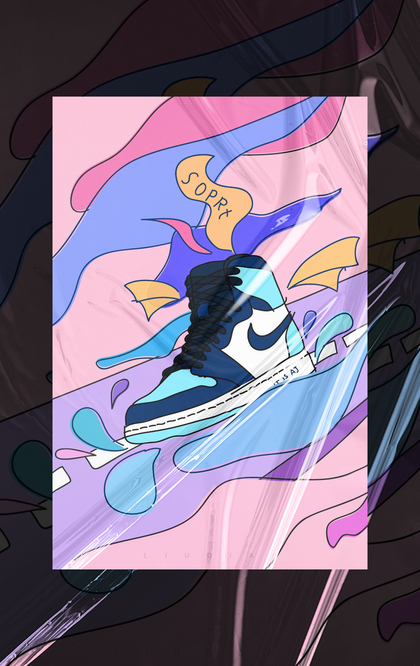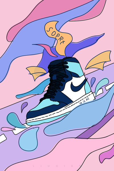 原创球鞋插画:AJ1高帮High球鞋 壁纸/版画双入