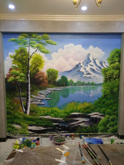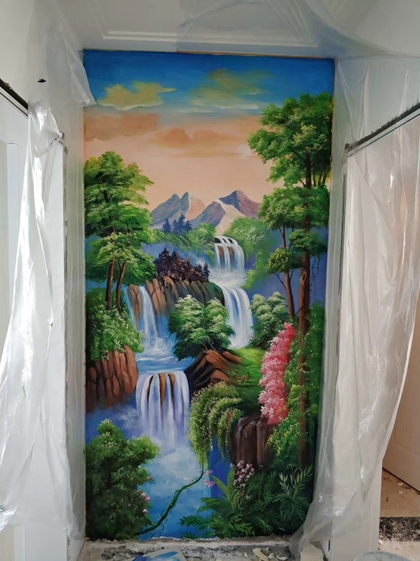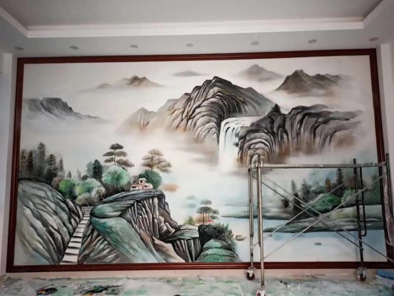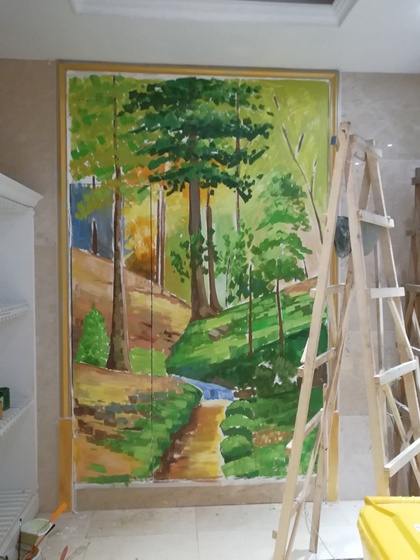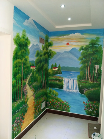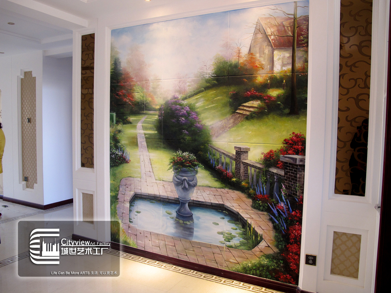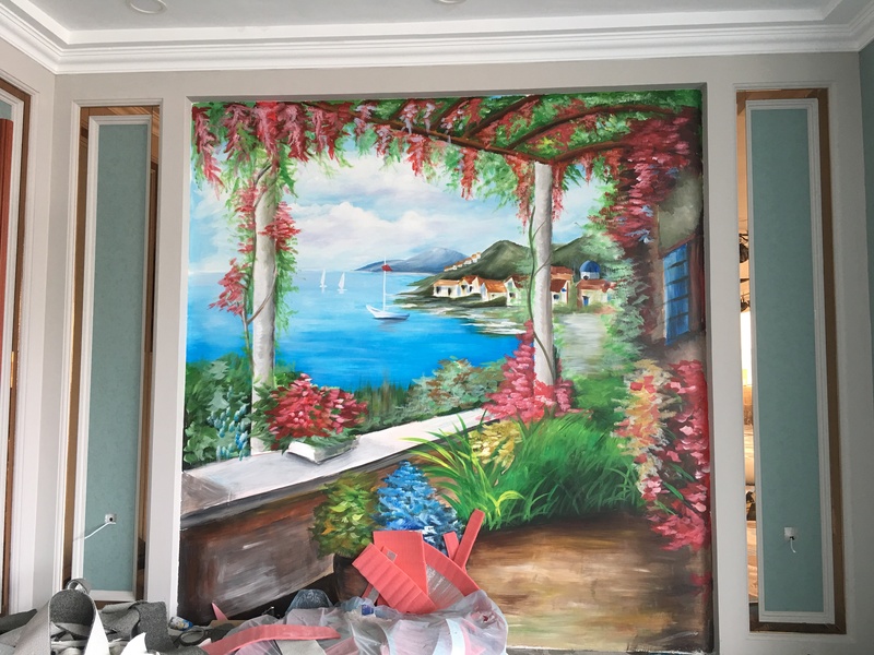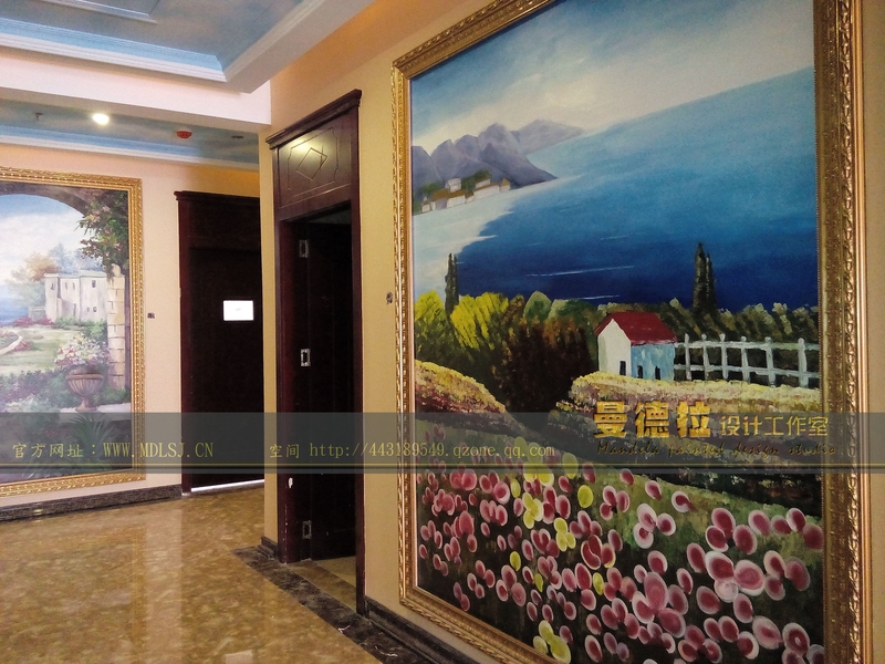 欧式风景地中海风情-墙绘绘画 廊道设计