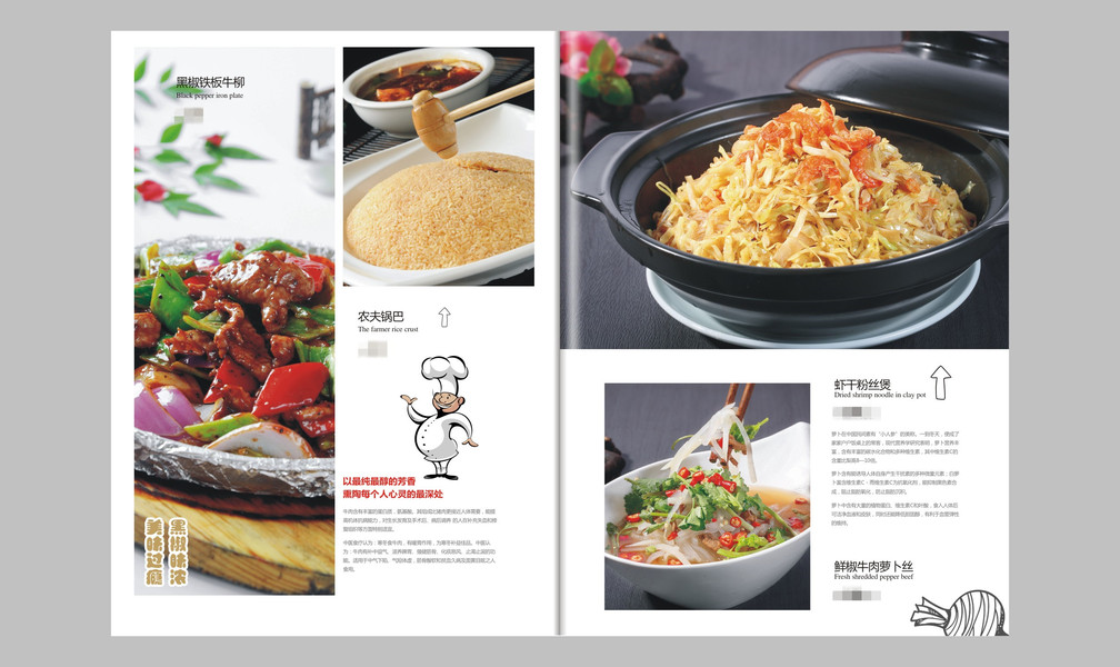 中餐菜谱内页设计黑白底