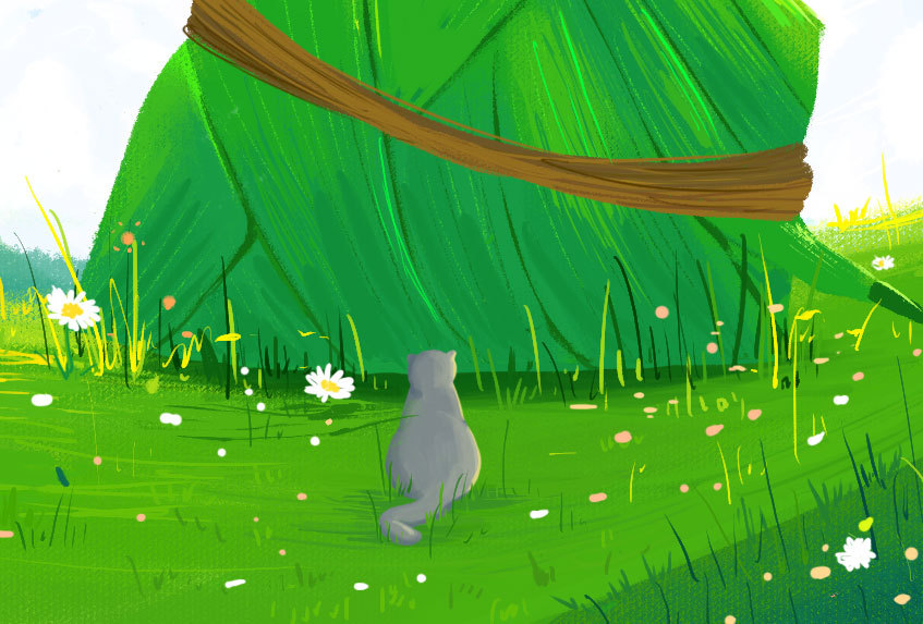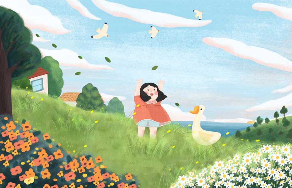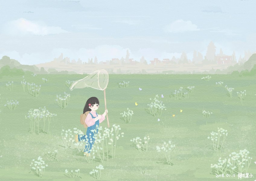 插画练习——春日草地捕蝶