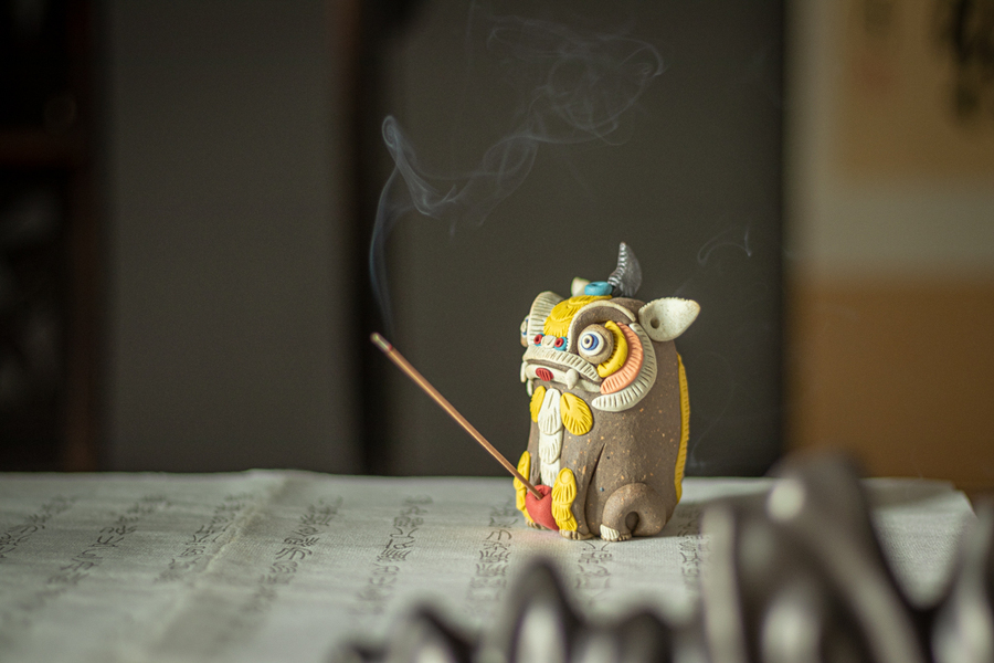 器十二 原创手工陶瓷醒狮茶宠香插摆件