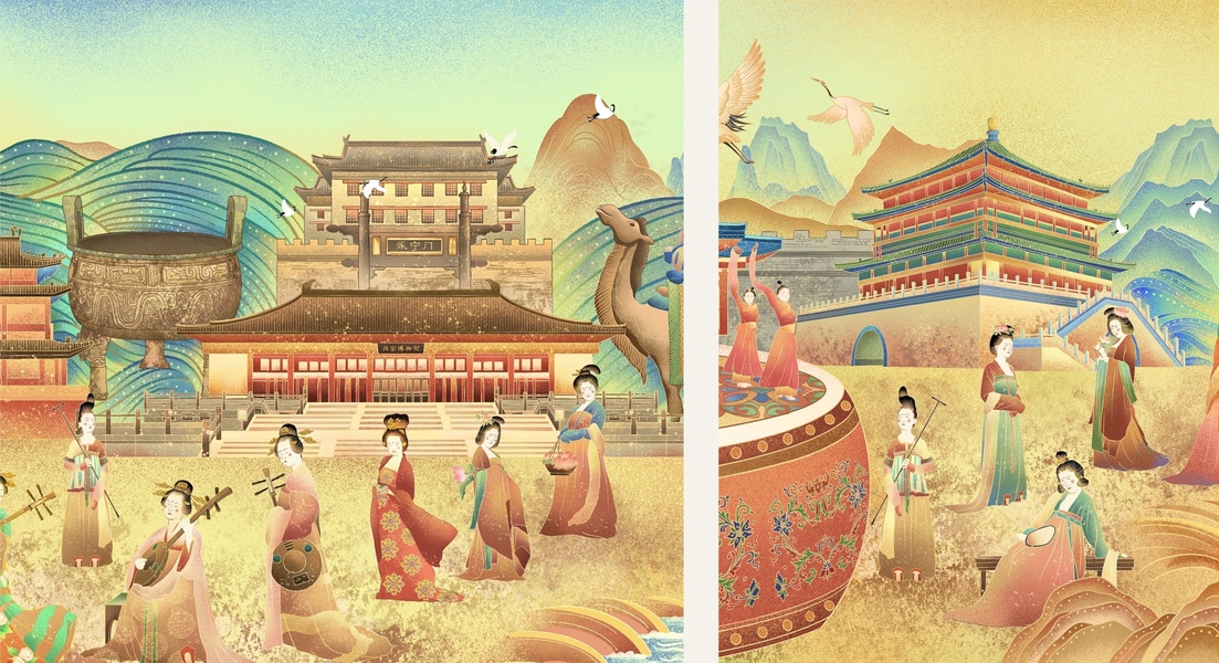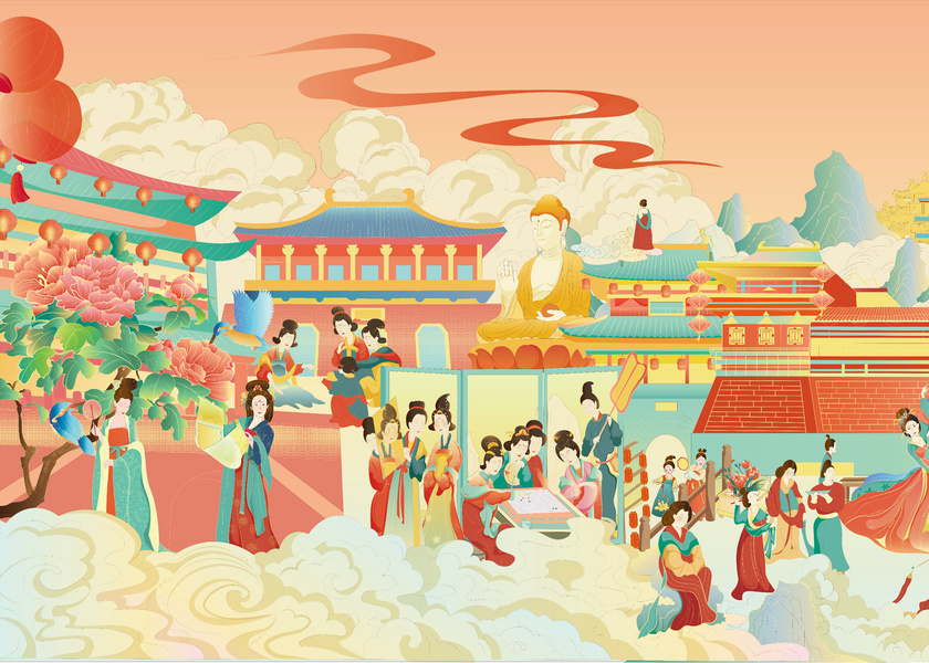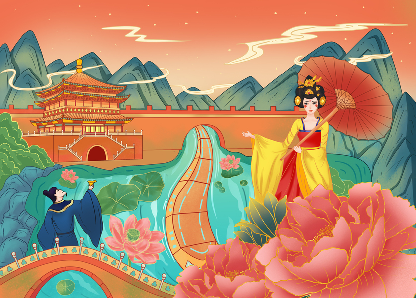 长幅插画《隋唐洛阳城--万民同乐》主题