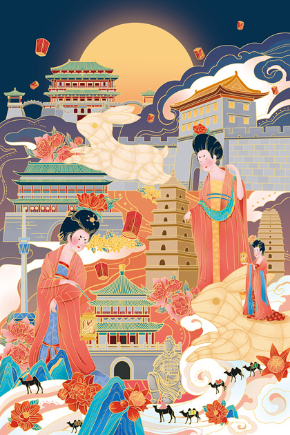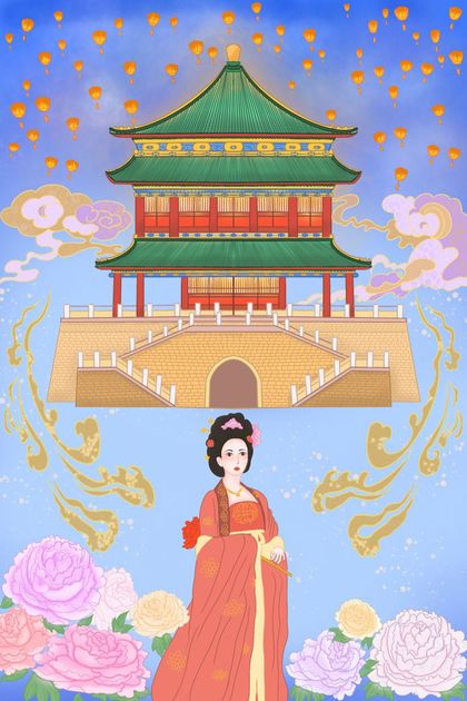 国潮城市插画 | 《生生灯火,梦回长安》