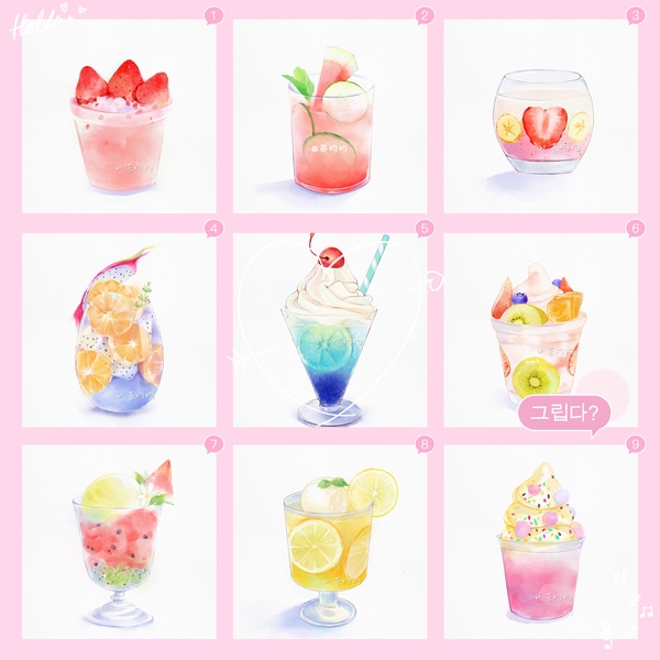 仿水彩~夏日水果冰