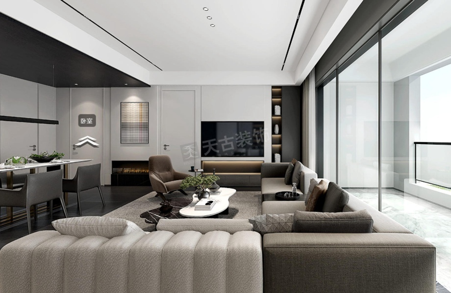 龙湖开元晶蓝装修,现代简约风格大平层设计,天古装饰