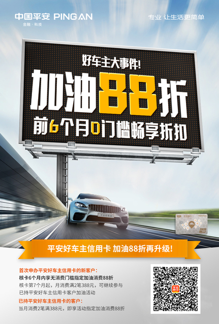 平安好车主信用卡加油88折,新用户达标0元年费