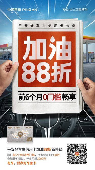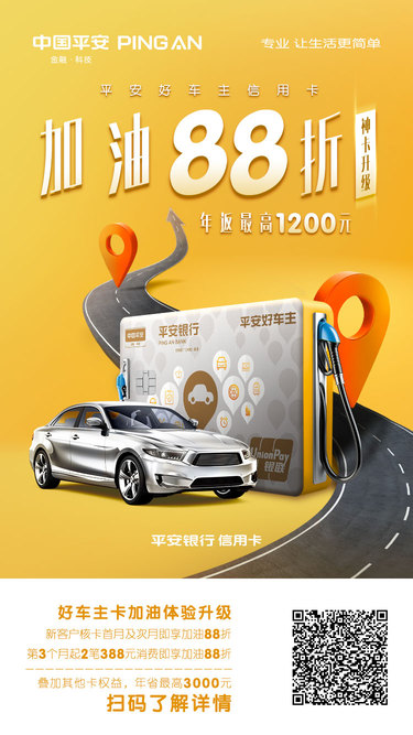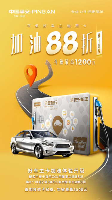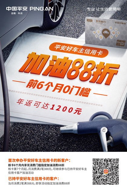 加油再出发,平安好车主信用卡加油88折,最高年返1200