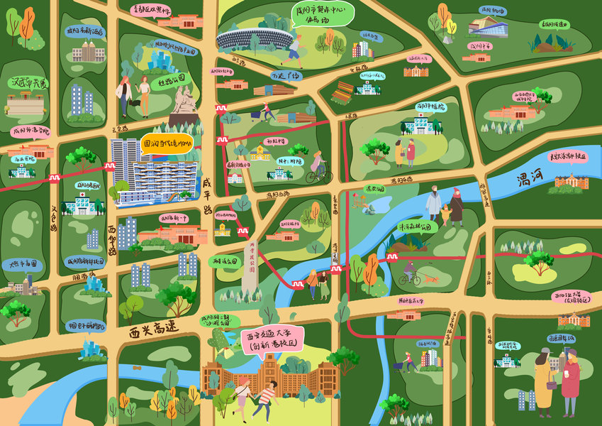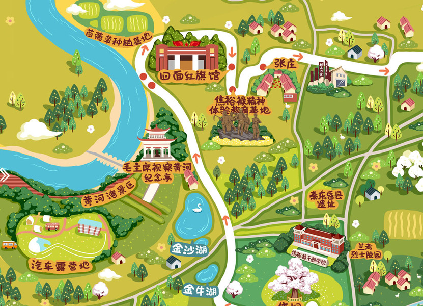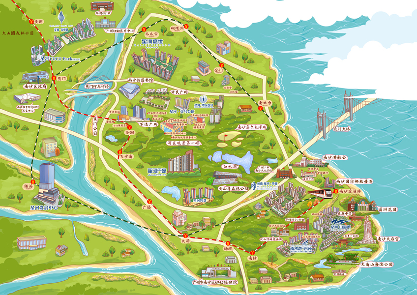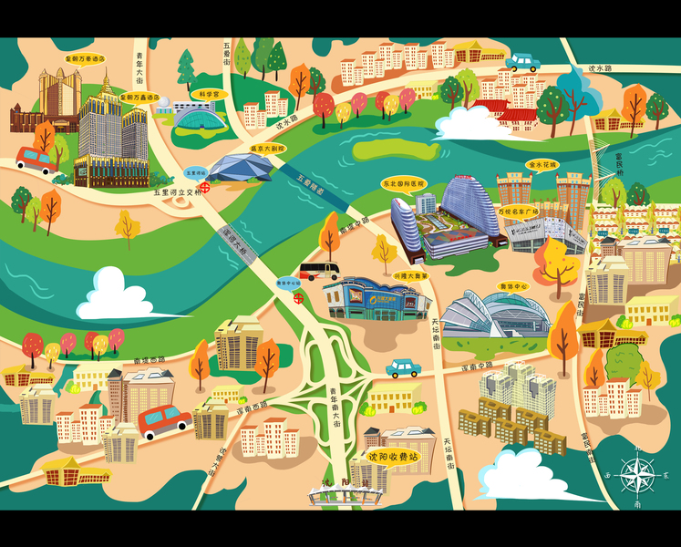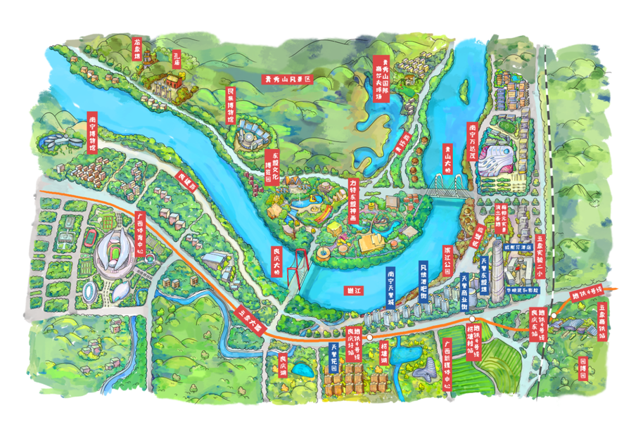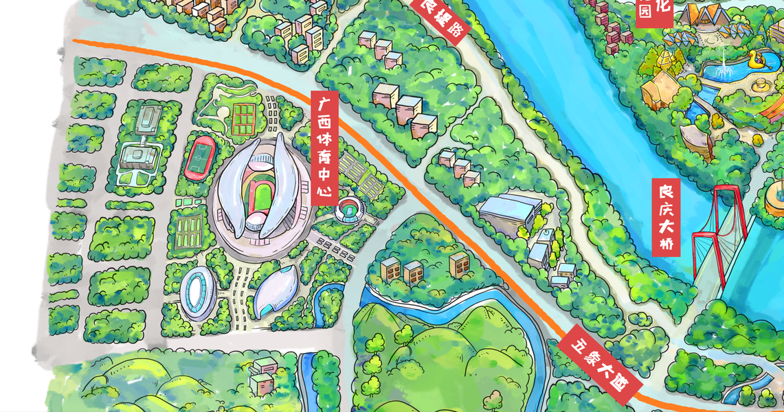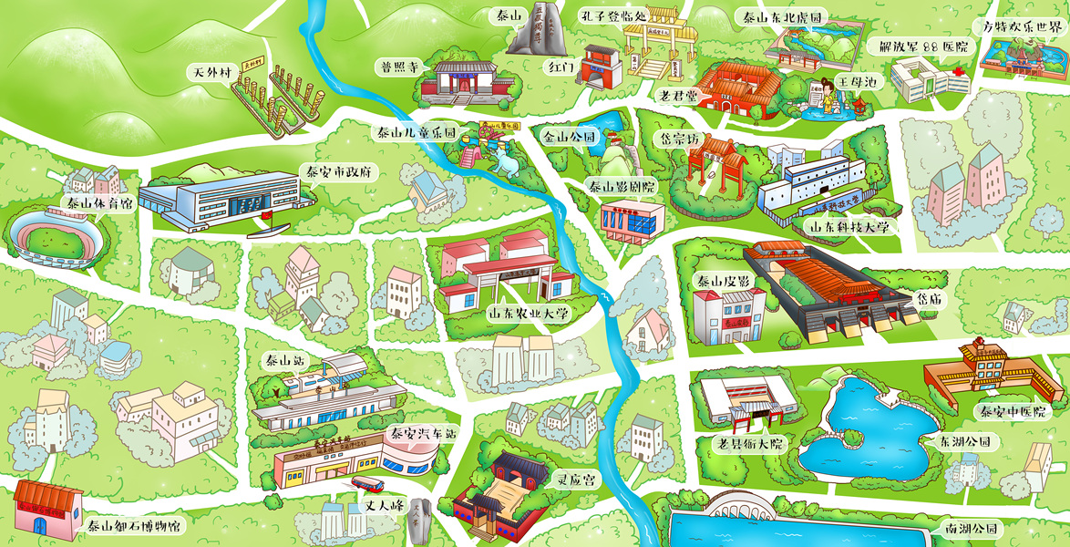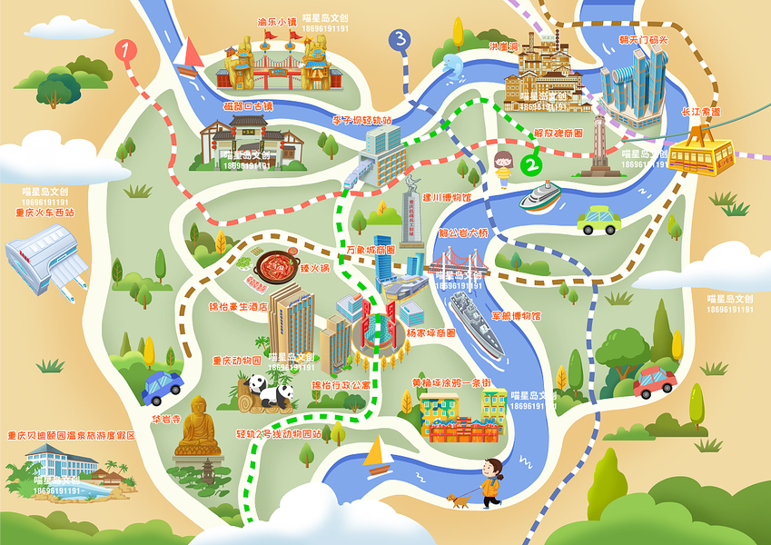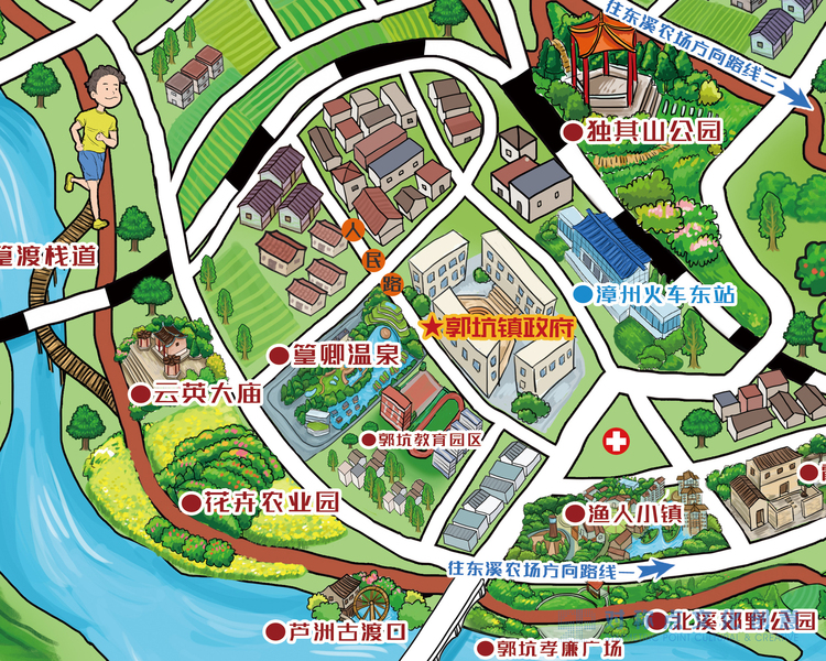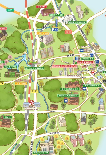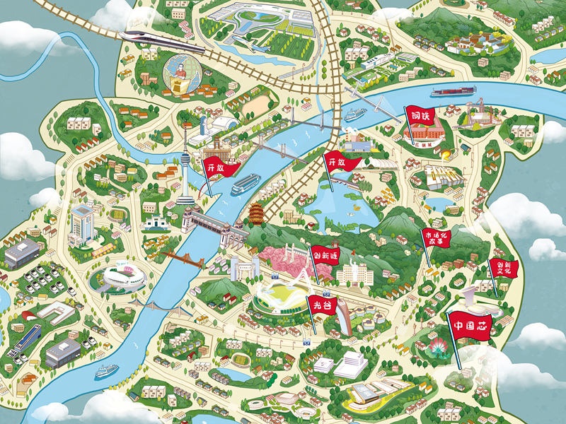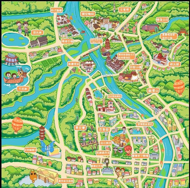 手绘地图定制设计景区城市地图游乐园古镇村落地图制作