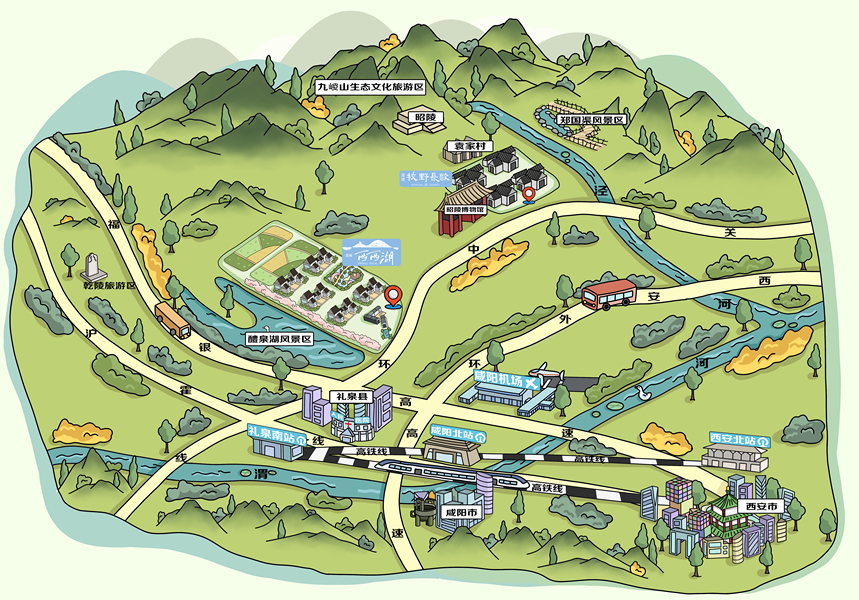 杭州景区手绘地图制作旅游地图智慧旅游导览系统