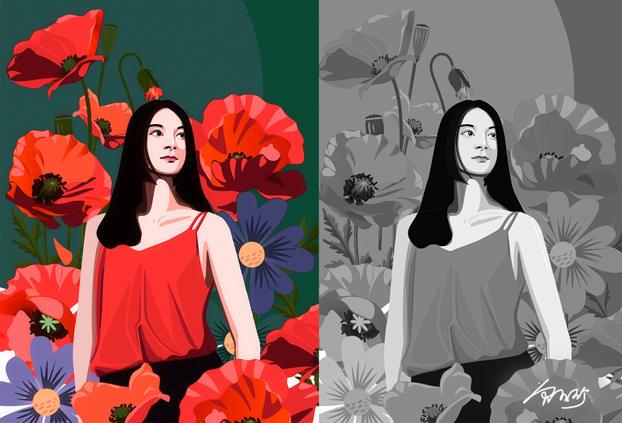 系列插画 花和女孩