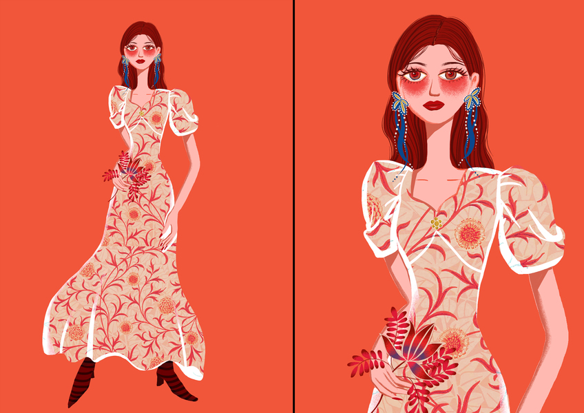 长脖女孩 | 人像插画