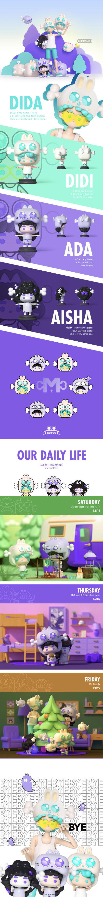 C4D练习-原创ip 骨头一家
