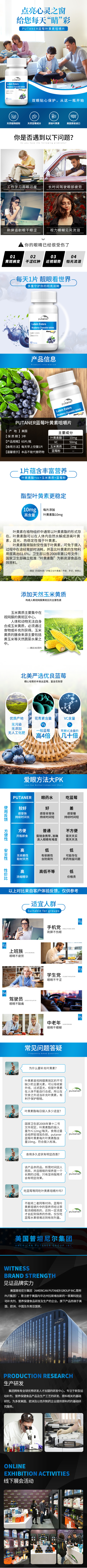 详情页蓝莓叶黄素营养品保健品健康蓝色高端大气上档次