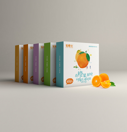 {原创}果冻橙水果礼盒手绘插画包装设计