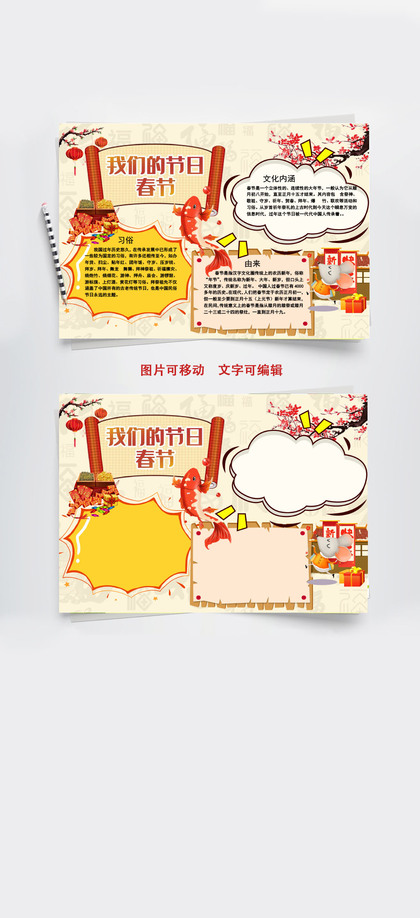 喜庆卡通风我们的节日春节介绍手抄报Word文档