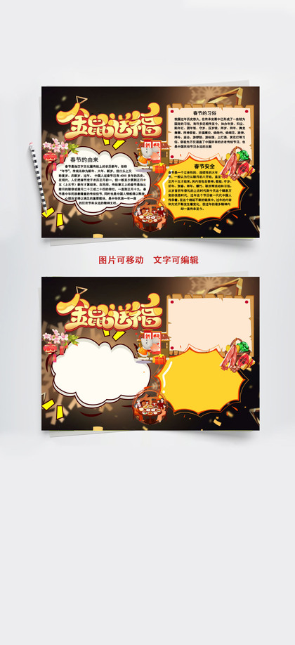 大气黑色卡通风金鼠送福春节介绍手抄报Word文档