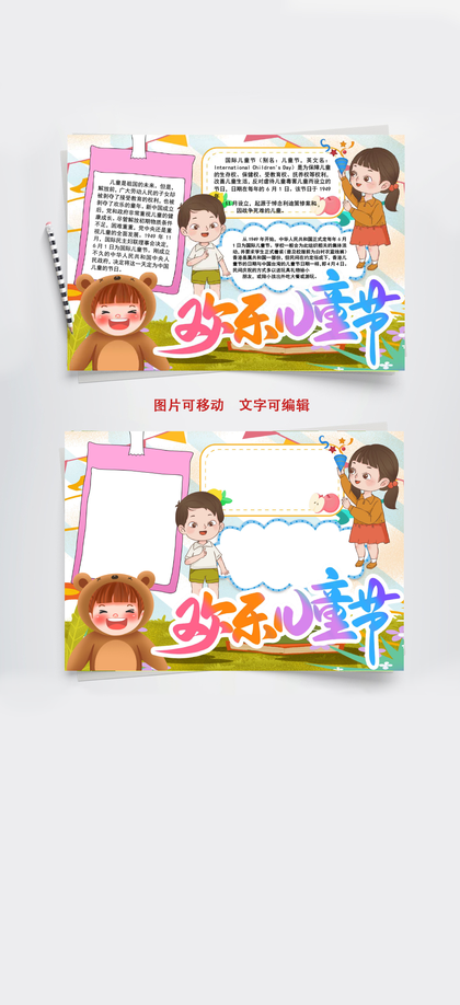 趣味卡通欢乐儿童节介绍手抄报Word文档