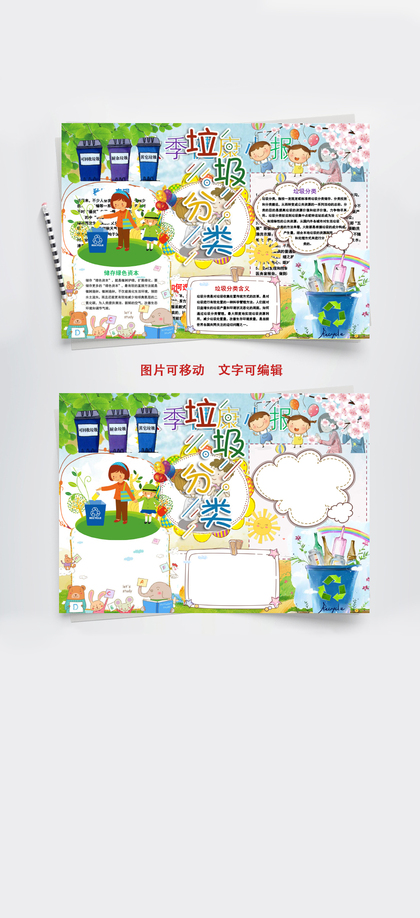 小清新卡通风垃圾分类保护地球环境手抄报Word文档