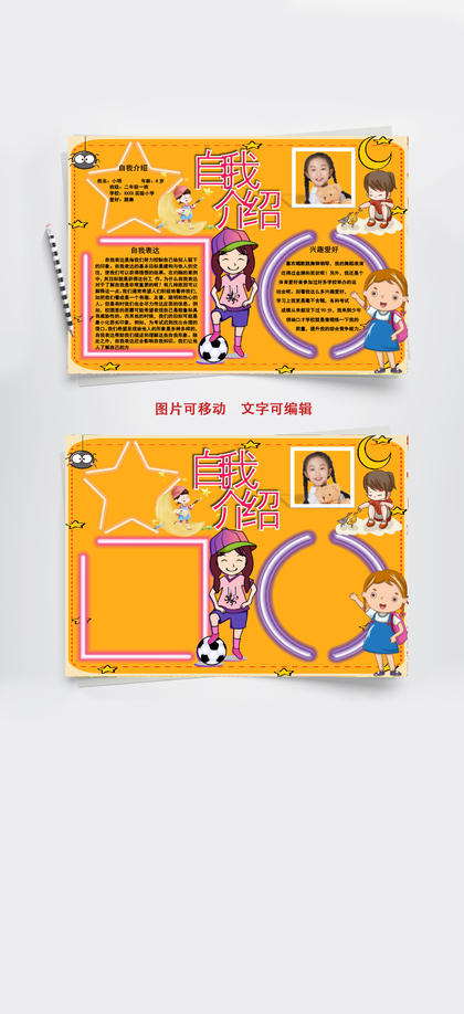 卡通橙色小清新儿童小学生自我介绍手抄报Word文档
